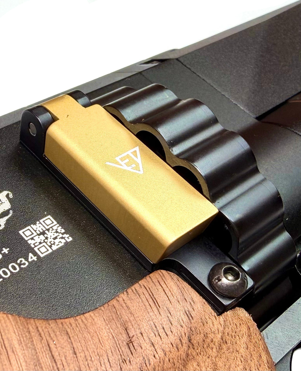Der Ladeanschluss ist aus hochwertigem eloxiertem Aluminium gefertigt, was ihm nicht nur ein elegantes, luxuriöses Aussehen verleiht, sondern auch für hervorragende Verschleißfestigkeit und Korrosionsschutz sorgt. Dadurch ist er widerstandsfähig gegen intensive Nutzung und hält problemlos Stößen stand – genau das, was man von einem Zubehörteil in diesem Segment erwarten darf. Der Verschluss funktioniert mit zwei Magneten, die die Klappe während des Schießens sicher geschlossen halten.