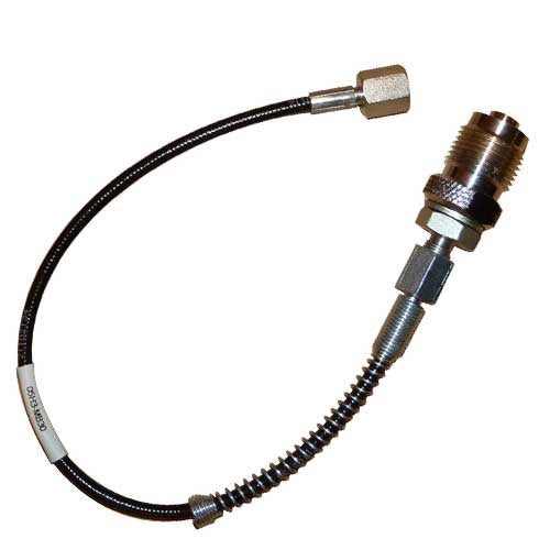 Hogedruk persluchtslang voor din-flessen (200/300 bar), aansluiting 1-8 bsp female. Past ook zo in de voet van een gehmanpomp. Slang is een microboreslang, zorgt voor minimaal drukverlies bij vullen en ontluchten. Flexibel en bestand tegen 450 bar druk. Nu met anti knik veer!!